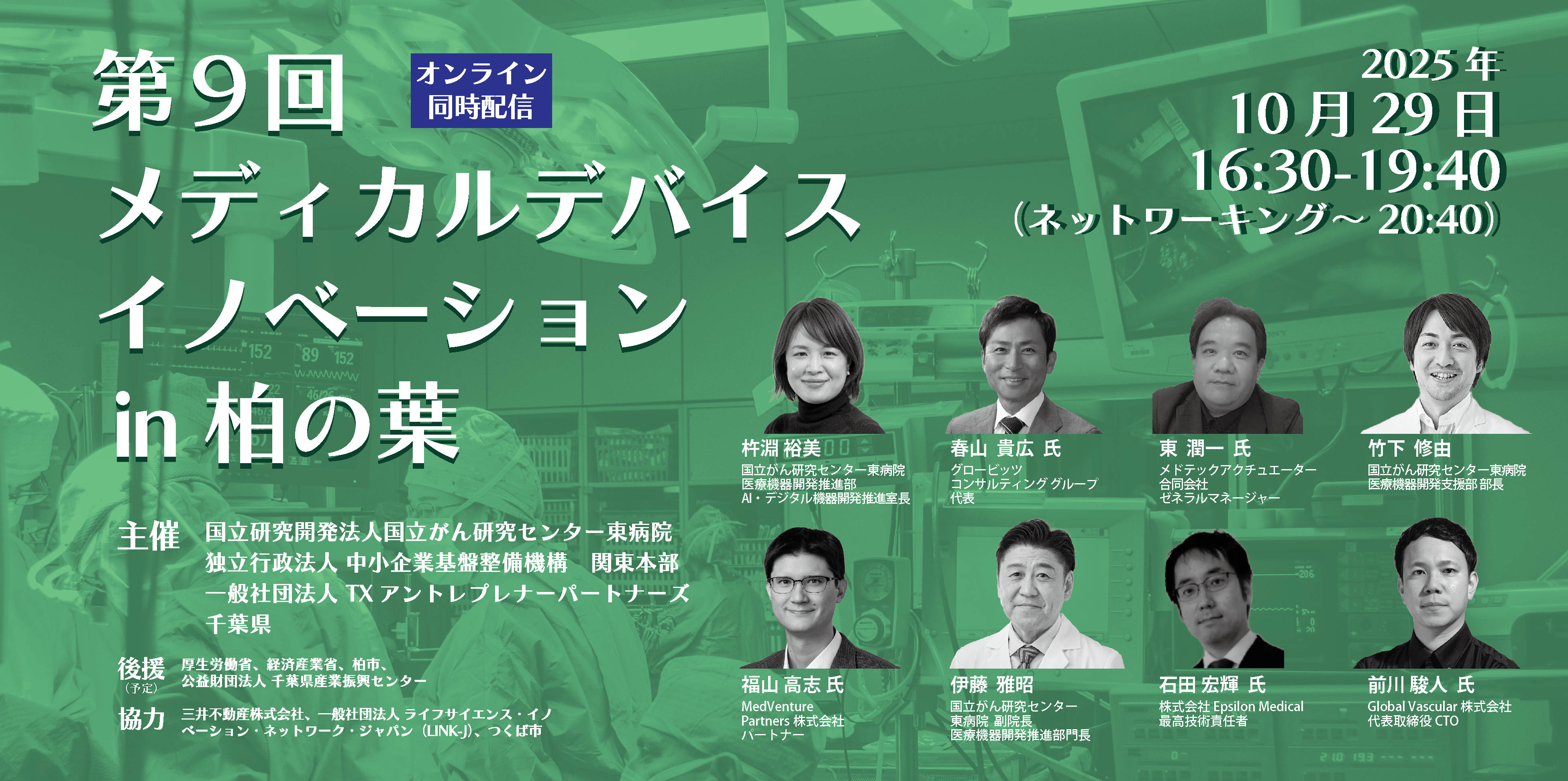 国立研究開発法人国立がん研究センター東病院、独立行政法人中小企業基盤整備機構 関東本部、一般社団法人TXアントレプレナーパートナーズ、千葉県は、柏の葉に医療機器イノベーションのエコシステム構築することを目指し、来る10月29日(水)に「第9回メディカルデバイスイノベーションin柏の葉」を柏の葉KOILにて開催します。※オンライン同時配信